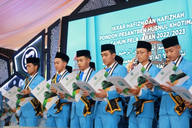 Pengasuh Pesantren Cendekia Amanah Depok itu, menyampaikan orasi ilmiah pada acara Haflah Attakharruj (kelulusan) dan Wisuda hafidz serta hafidzah MA Husnul Khotimah bertajuk “Peran Alumni Bersinergi Membangun Negeri”.
