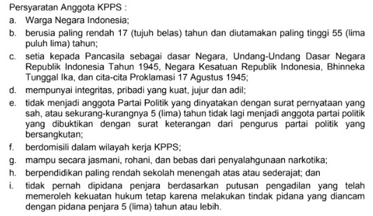 Adapun syarat dan kelengkapan dokumen untuk menjadi KPPS adalah sebagai berikut: