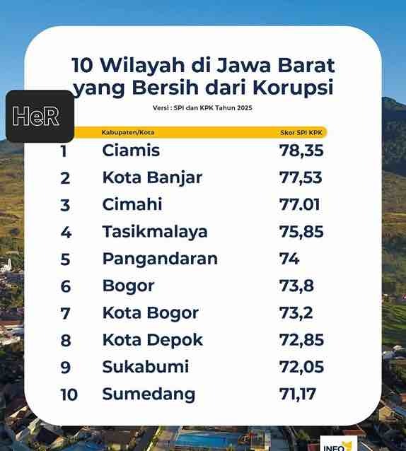 KUNINGAN (MASS) – Kabupaten Kuningan tidak masuk dalam 10 besar daerah paling bersih dari korupsi di Jawa Barat berdasarkan data SPI dan KPK tahun 2025.