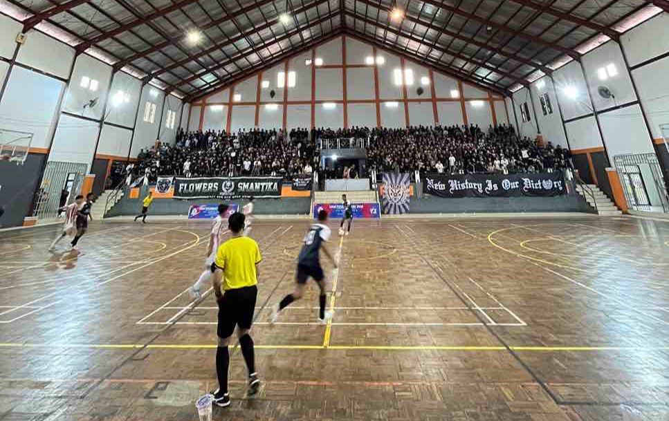 Suporter SMAN 3, yang dikenal dengan sebutan “Flowers,” dan suporter SMKN 3 yang akrab disebut “Botak Mania” sama-sama bernyanyi tiada henti menyemangati sekolahnya membuat suasana semakin meriah dan bergemuruh di setiap sudut GOR.