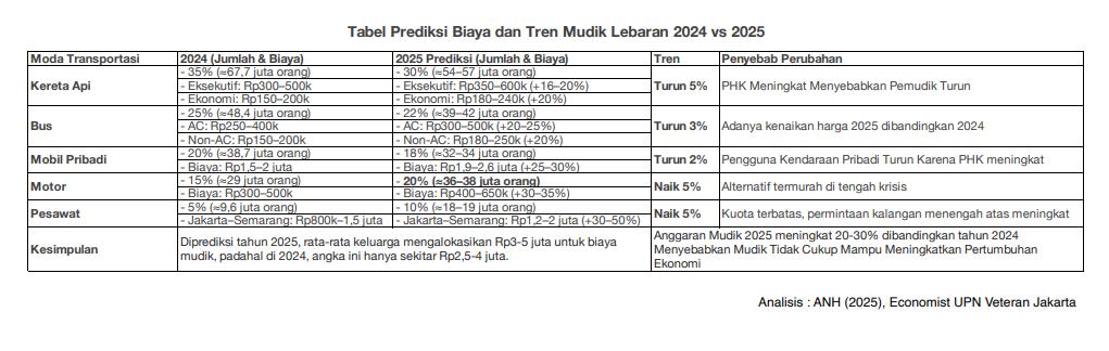 Diprediksi tahun 2025, rata-rata keluarga mengalokasikan Rp3-5 juta untuk biaya mudik, padahal di 2024, angka ini hanya sekitar Rp2,5-4 juta. (lihat lampiran pdf)