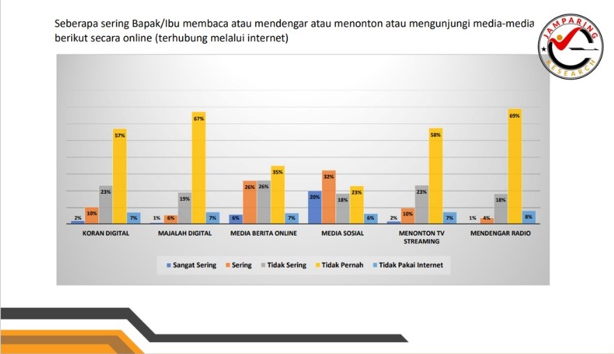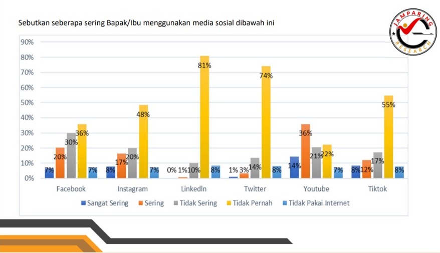 KUNINGAN (MASS) – Hasil survey Jamparing Reseacrh menunjukkan lebih dari setengah warga Kabupaten Kuningan sering mengakses media sosial.
