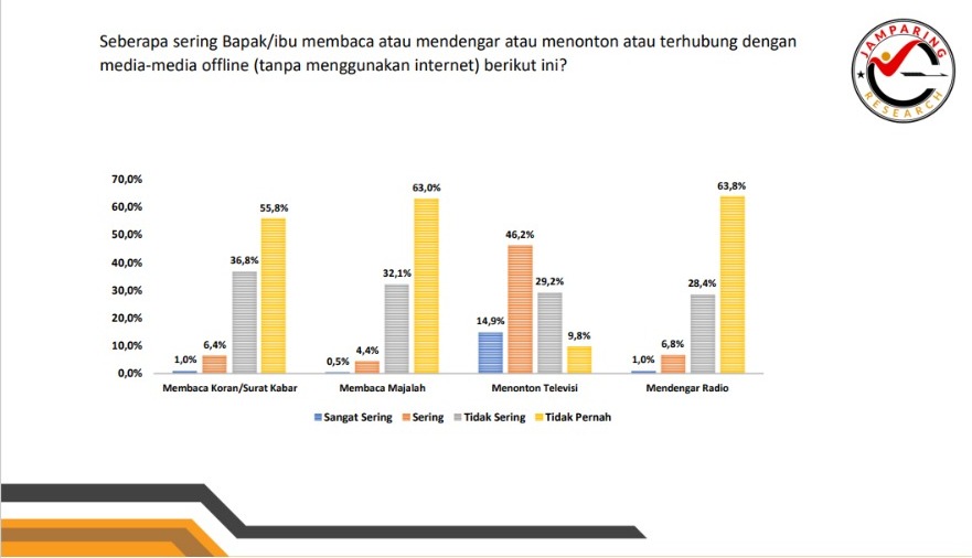 Dalam salah satu poinnya, yang ditanyakan adalah seberapa sering warga Kuningan terhubung denga media tanpa interner.
