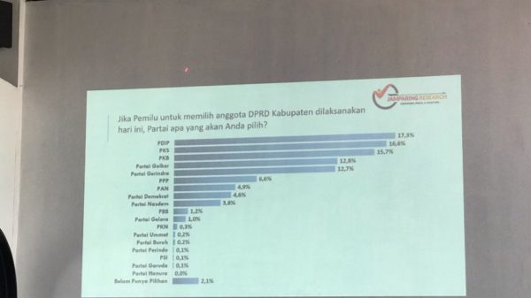 Data tersebut, diperoleh Jamparing Research setelah melakukan survey pada 1200 responden (multistage random sampling) dari 32 kecamatan.