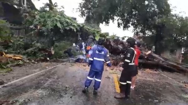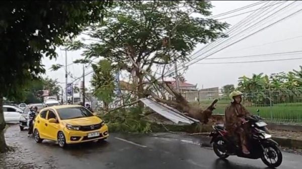 Khawatir ada yang patah lagi dan menimpa orang yang tengah ziarah, satu pohon yang terbilang cukup besar itu akhirnya ditebang.