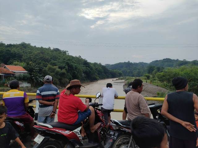 Korban hanyut tenggelam saat berenang bersama enam temannya di aliran sungai Cisanggarung, Desa Benda, Kecamatan Luragung pada Rabu (10/12/2025) siang. (didin)