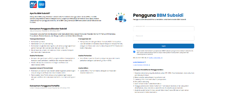 Pendaftaran, dimulai dari masuk website subsiditepat.mypertamina.id, disana akan tampil layar login dan pendaftaran. Di luar wilayah prioritas, tetap bisa melakukan pengisian dan penyimpanan data pendaftaran di My Pertamina.