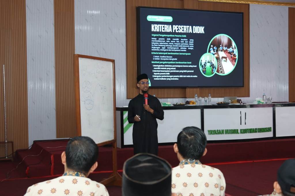 Hadir dalam pembukaan acara, Ketua I Yayasan Husnul Khotimah sekaligus Pjs. Kadiv HRD dan Personalia, H. Maman Kurman, SH., didampingi Kepala Unit TTQ, Ustadz Iif Ikhwana, S.Pd.I. Dalam sambutannya, Maman Kurman menyampaikan rasa syukur dan mengingatkan para peserta bahwa peran pengajar Al-Qur’an adalah kemuliaan di sisi Allah SWT.