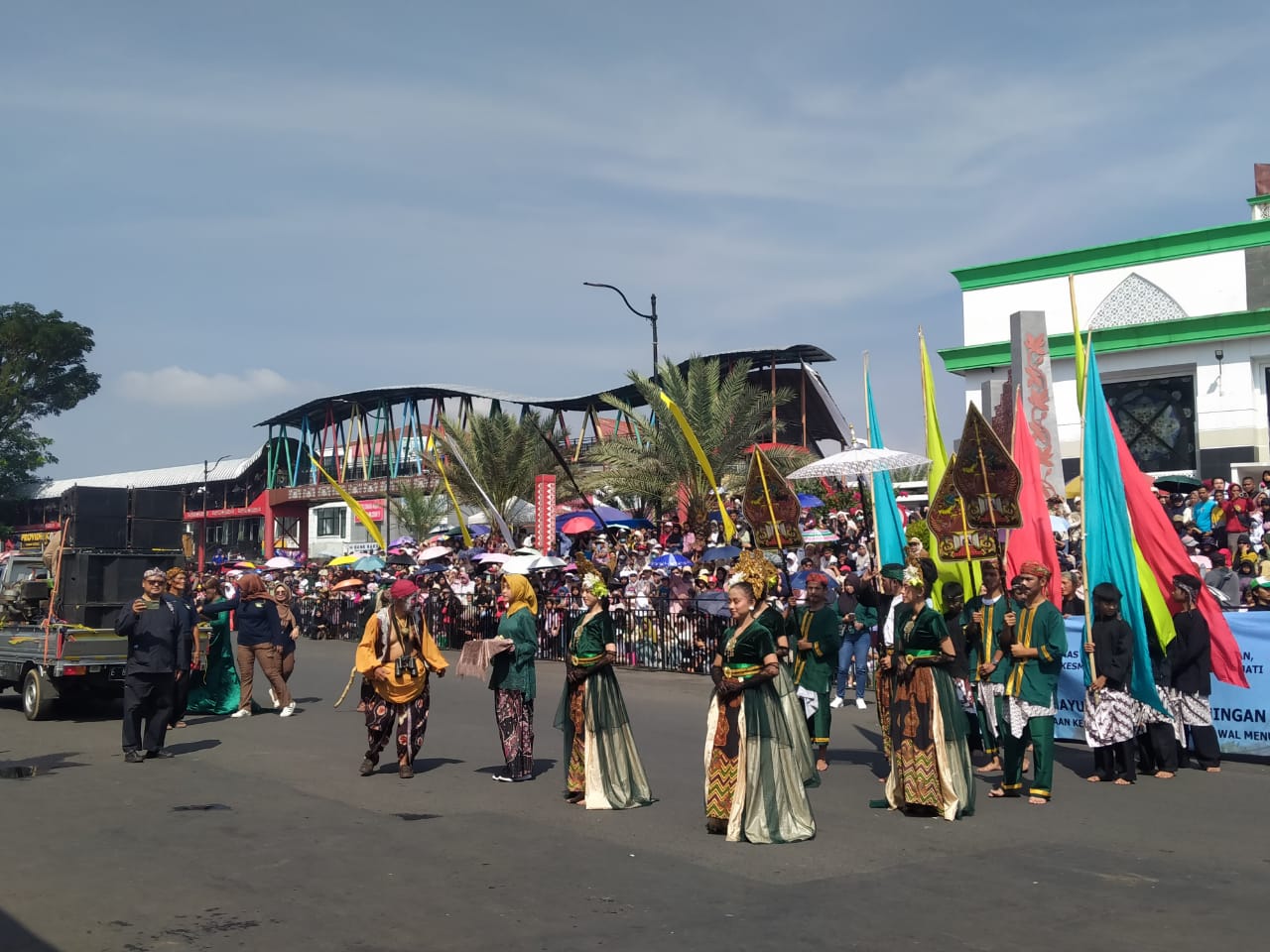 KUNINGAN (MASS) – Suasana meriah menyelimuti pusat Kota Kabupaten Kuningan, Minggu (5/10/2025) saat digelarnya Karnaval Budaya yang disambut antusias oleh ribuan masyarakat Kuningan.