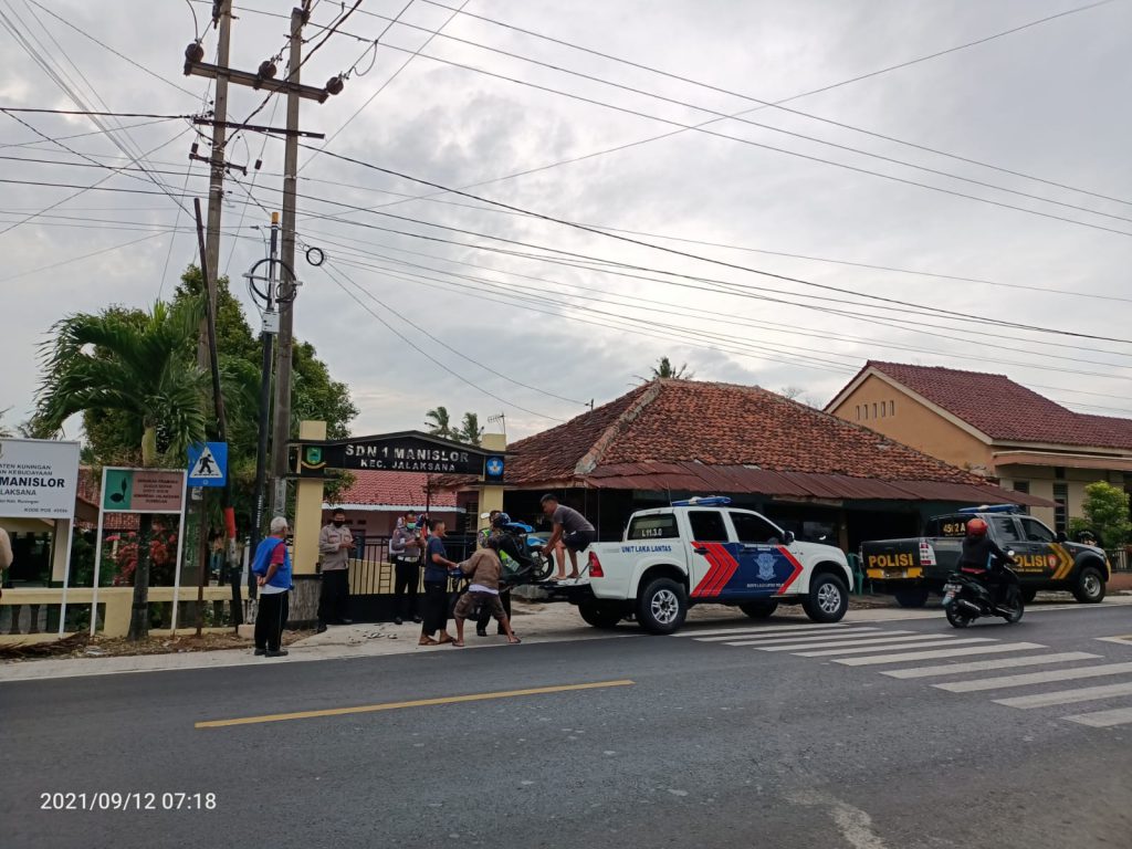 KUNINGAN (MASS)- Insiden laka lantas kembali terjadi di ruas Jalan Kuningan-Cirebon atau tepatnya di depan SDN 1 Manislor Kecamatan Jalaksana pada Minggu (12/9/2021) pagi sekitar pukul 07.00 WIB.