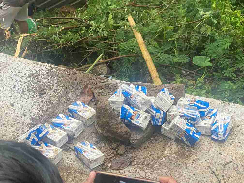 Dari informasi yang dihimpun di lapangan, mobil box tersebut bermuatan susu sekitar 5 ton. Mobil terperosok, setelah menabrak pembatas jalan yang kini terlihat rusak.
