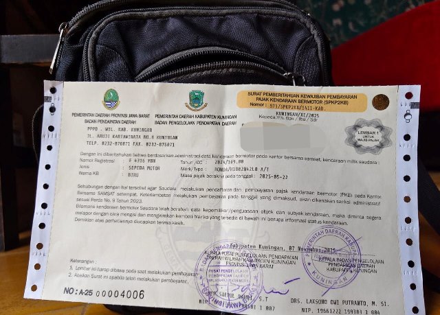 Bukan tanpa sebab, Devi baru saja dikirimi surat wajib pajak yang dikeluarkan Pemerintah Daerah Provinsi Jawa Barat melalui Samsat – Bappeda Kuningan. Surat wajib pajak itu, ditujukkan untuk kendaraan motor Honda Beat E 4316 YBN, yang dulu dilaporkan hilang ke Polisi.