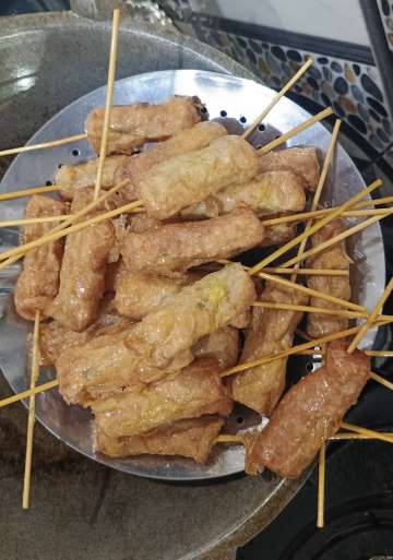 Dikatakannya, jajanan tersebut terbuat dari campuran daging ayam segar yang dibalut tepung, lalu dibumbui, kemudian dicelup ke kocokan telur sebelum digoreng hingga renyah.