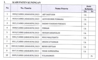 Hal itu, tertuang dalam surat bernomor: 009/PENG/TMS/JBR-III/07/2023 tentang Pengumuman Hasil Tes Kesehatan dan Wawancara, calon anggota Bawaslu wilayah Ciayumajakuning.