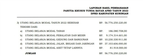 Berikut rincian hutang belanja Pemda Kabupaten Kuningan: