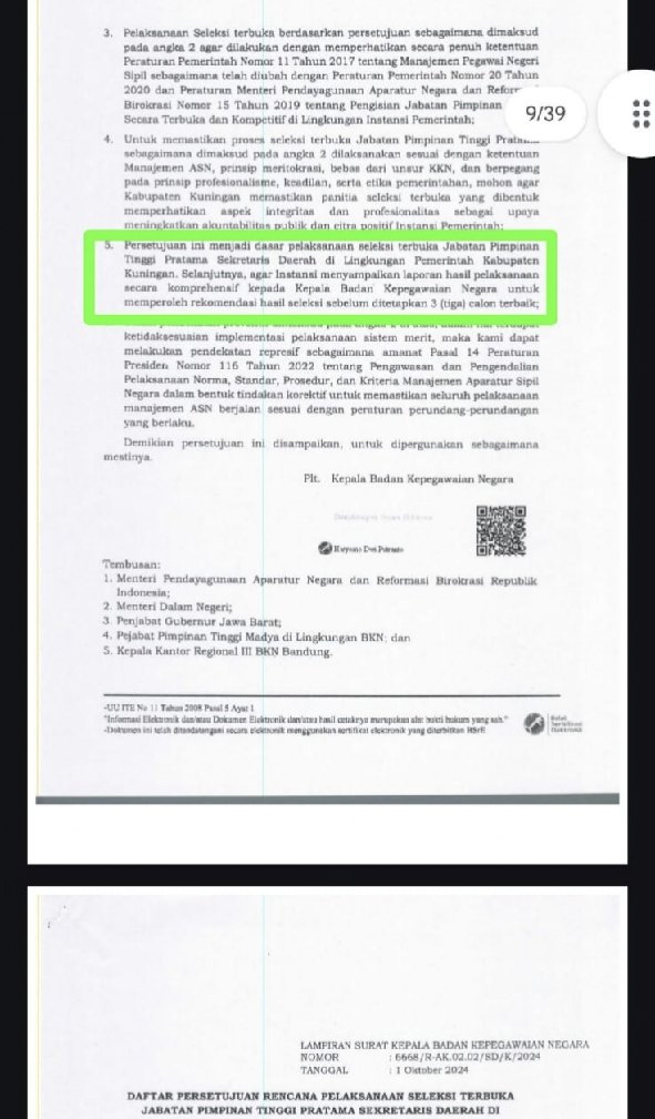“Pansel Kuningan tidak melaporkan secara lengkap ke BKN proses open bidding sampai penetapan 3 besar. Main tabrak aturan saja, kayak sudah kebelet,” sindirnya.