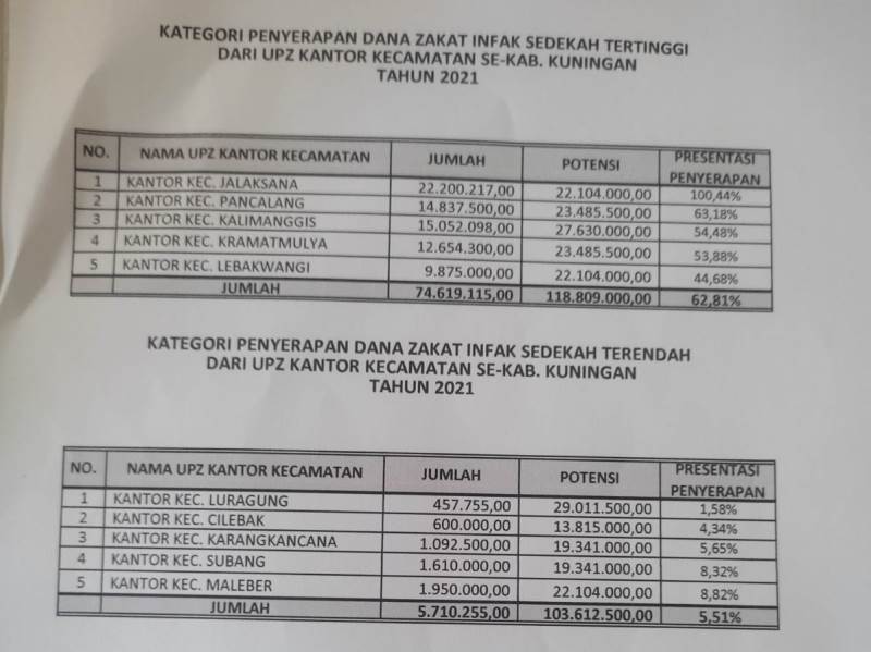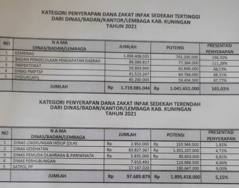 Diumumkan dalam kegaiatan itu, 5 terbaik dan 5 terendah di bidang penyerapan zakat dari setiap lembaga.