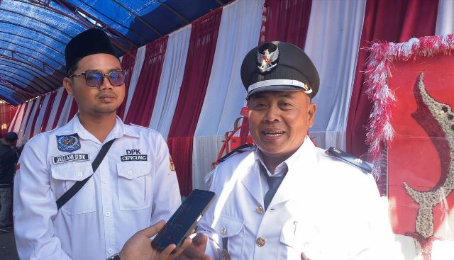 Kades Muncangela Enco Carsa, disampingi Ketua Penyelenggara Kegiatan Jaelani, menjelaskan kenapa peringatan HUT Kemerdekaan RI, dilakukan dengan banyak program.