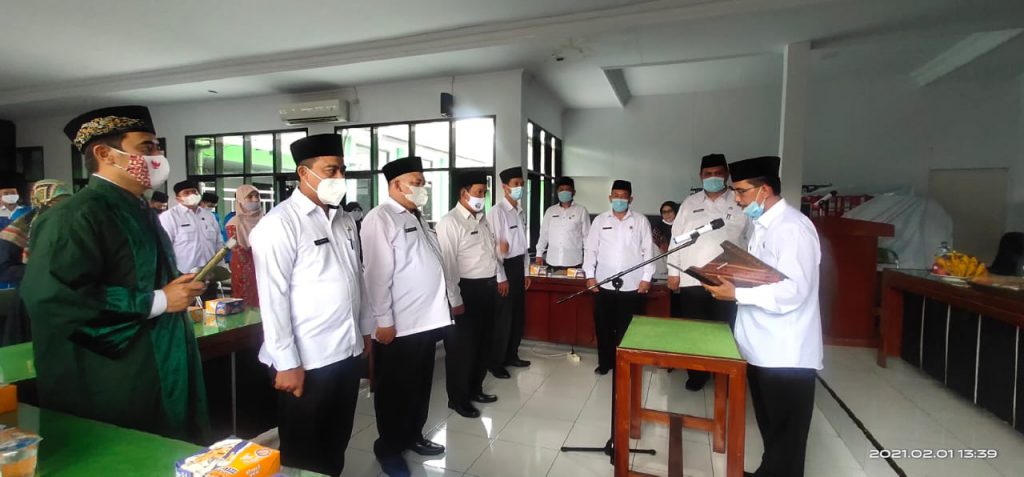 KUNINGAN (MASS)- Untuk memenuhi kebutuhan tenaga fungsional penghulu di lingkup Kankemenag Kabupaten Kuningan, Senin (1/2/2021) Kepala Kankemenag Kabupaten Kuningan Dr Hanif Hanafi melantik dan mengambil sumpah 4 orang Jabatan fungsional Penghulu. Mereka untuk ditempatkan pada KUA Kecamatan. Pelantikan dan pengambilan sumpah jabatan fungsional penghulu selain dihadiri para pejabat di lingkup Kankemenag, juga dihadiri langsung Kepala … Lanjutkan membaca Pelantikan Penghulu Sekaligus Pembinaan CPNS Baru