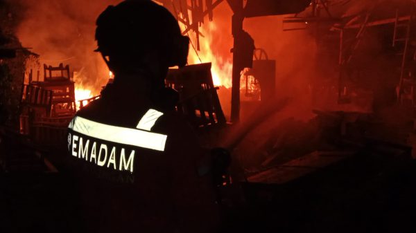 KUNINGAN (MASS)- Suasana hajatan di Dusun Cijemit Timur Desa Cijemit Kecamatan Ciniru pada Sabtu (8/6/2019) sekitar jam 11 siang tiba-tiba menjadi histeris. Pasalnya, salah satu pemain Dogig alias Dogdog dan bebegig bernama Rudianto alias Kudil terbakar.