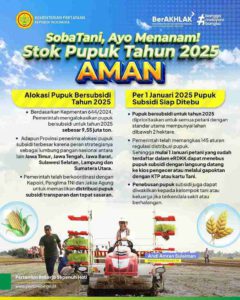 JAKARTA (MASS) — Pemerintah melalui Kementerian Pertanian telah menetapkan alokasi pupuk bersubsidi sebesar 9,55 juta ton untuk tahun 2025. Keputusan itu berdasarkan Kepmentan No. 644/2024 yang diumumkan melalui saluran resmi WhatsApp Kementerian Pertanian pada Selasa (7/12/2025).