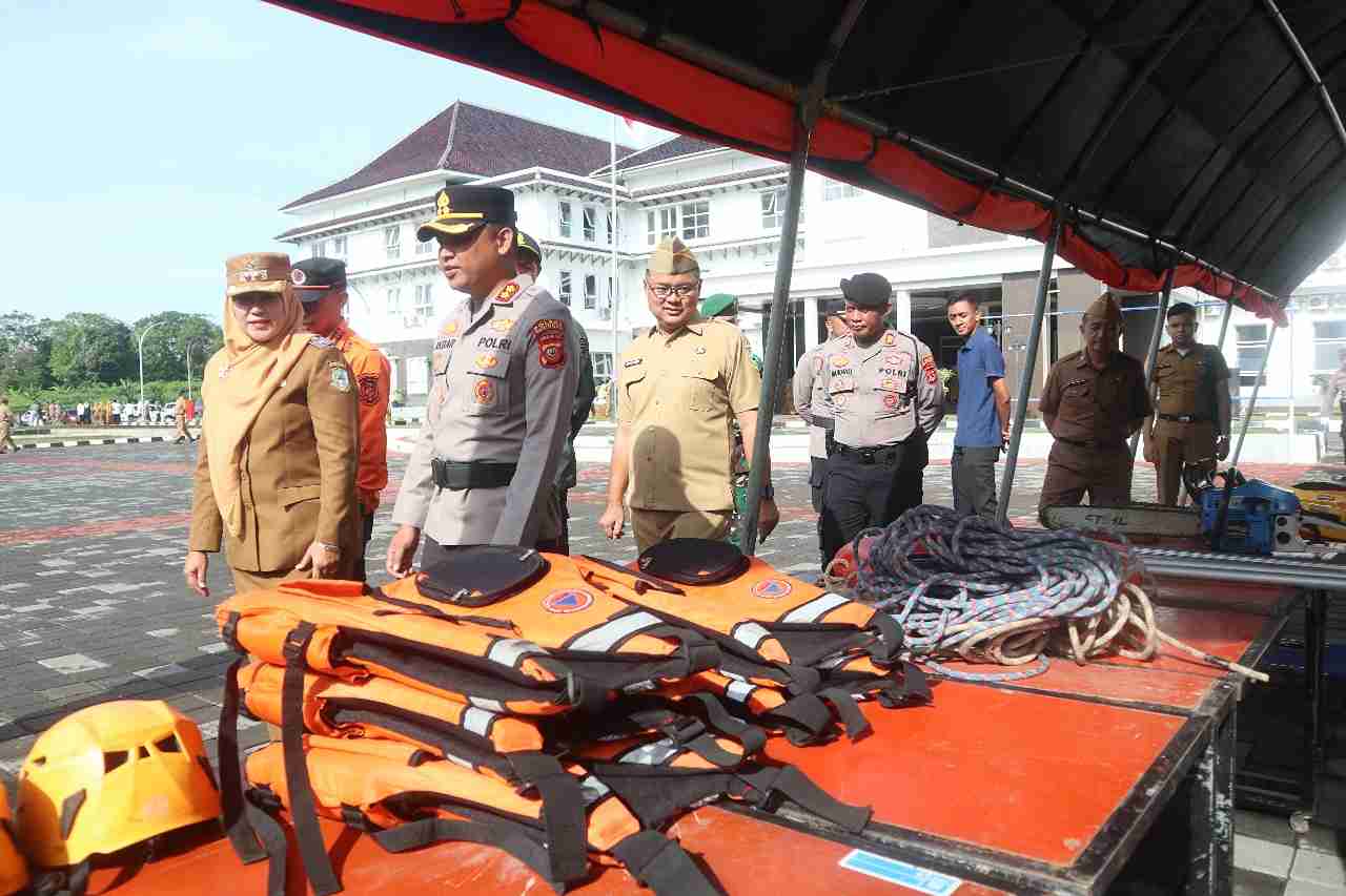 Apel kesiapsiagaan dipimpin langsung oleh Wakil Bupati Kuningan, Tuti Andriani, S.H., M.Kn., dan diikuti oleh jajaran Forkopimda, Kapolres Kuningan AKBP Muhammad Ali Akbar, S.I.K., M.Si., Pj Sekretaris Daerah Dr. Wahyu Hidayah, M.Si., Kepala BPBD Indra Bayu Permana, S.STP., serta unsur TNI, perangkat daerah, dan Forum Camat se-Kabupaten Kuningan.