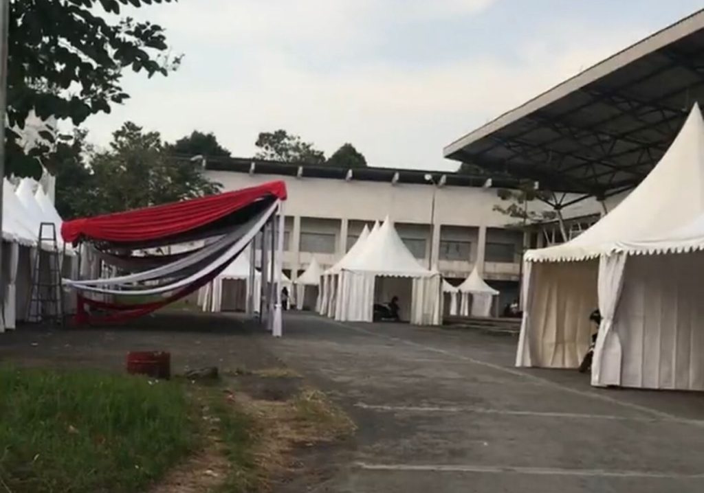 KUNINGAN (MASS) – Pendirian tenda dan persiapan-persiapan Pameran Pembangunan Hari Jadi Kuningan ke-524 di Terminal Tipe A Kertawangunan, terpaksa dihentikan untuk sementara.