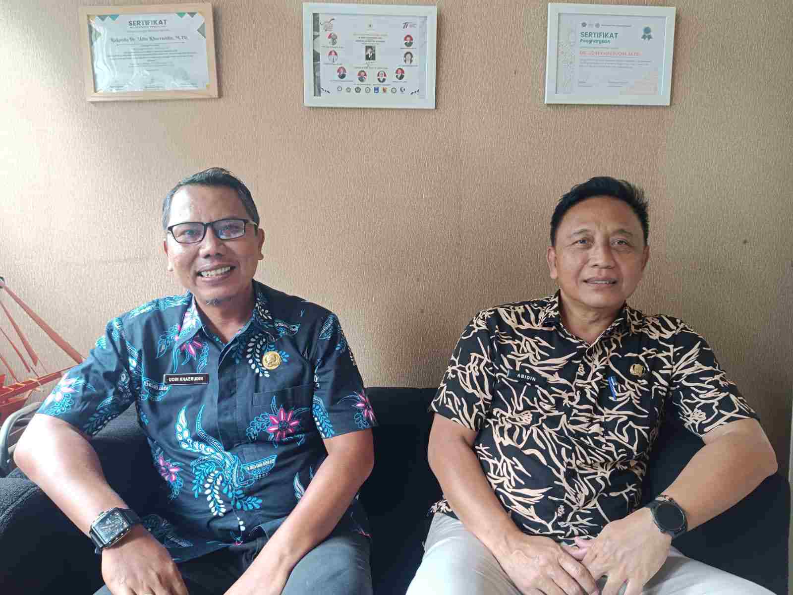 Kepala Bidang GTK Disdikbud Kuningan H Abidin (kanan), didampingi Kasi PTK SMP Dr Udin Khoerudin. (Foto: eki)