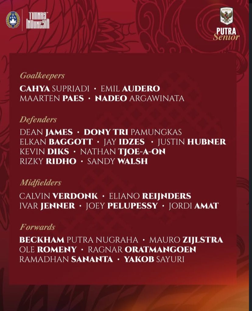 JAKARTA (MASS) – Final Skuad untuk FIFA Series 2026 akhirnya diumumkan, dari daftar awal yang memuat 41 nama, John Herdman memanggil 24 pemain yang dianggap terbaik dan siap bertanding. Keputusan ini diharapkan memberi keseimbangan antara pengalaman, kualitas teknis, dan kebugaran pemain untuk memenangkan dua pertandingan nanti.