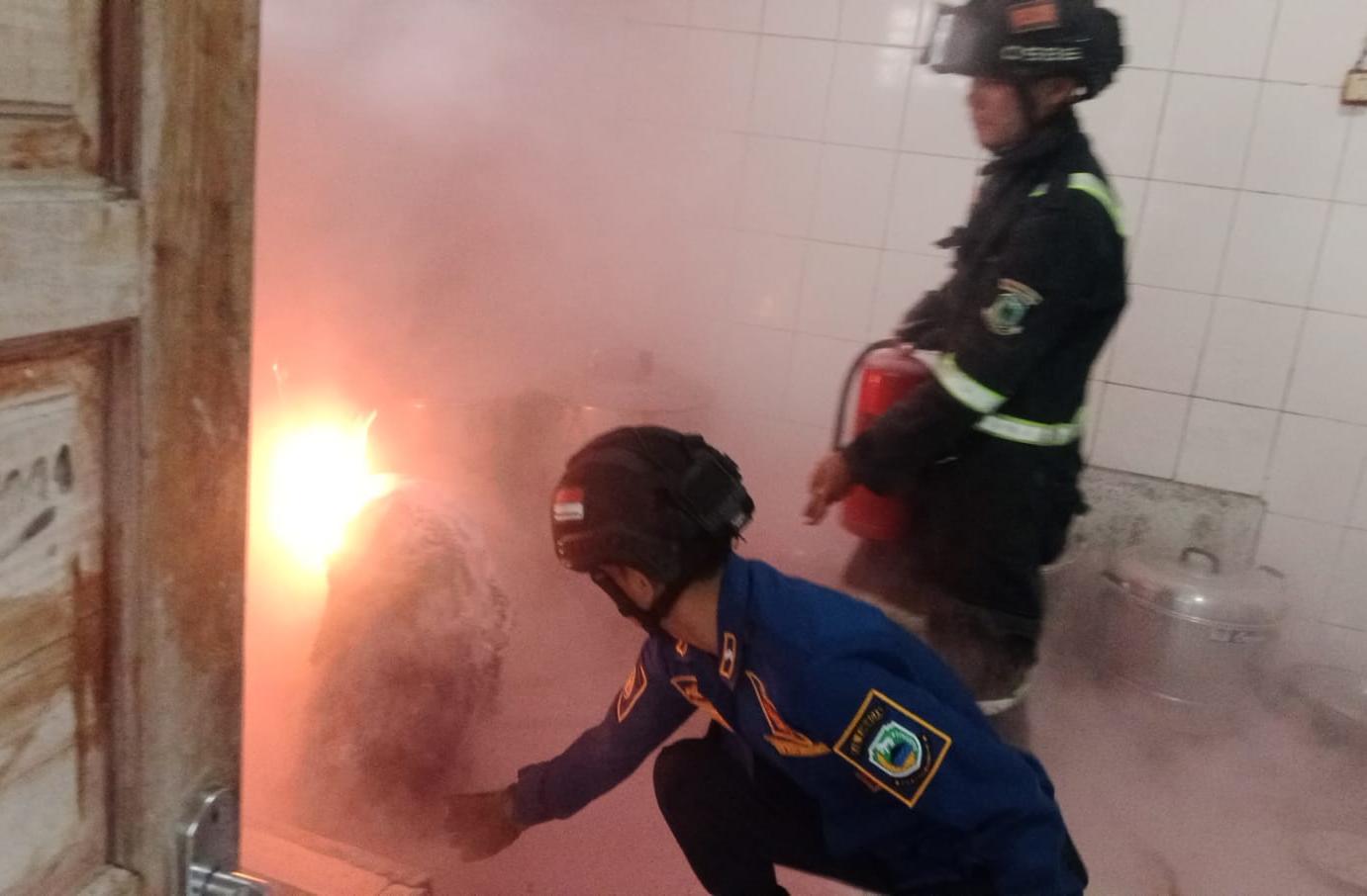 Api berhasil dipadamkan dalam waktu sekitar lima menit menggunakan APAR (alat pemadam api ringan). Berdasarkan dugaan sementara, kebakaran berasal dari kebocoran selang gas yang tersambar api kompor yang sedang menyala.
