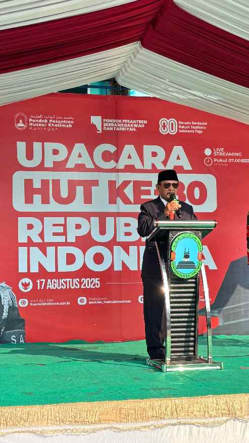 KUNINGAN (MASS) – Pondok Pesantren Husnul Khotimah kembali melaksanakan Upacara Peringatan Hari Ulang Tahun (HUT) Kemerdekaan Republik Indonesia ke-80 dengan khidmat dan penuh semangat kebangsaan, Minggu (17/8). Bertempat di lapangan STISHK pesantren, upacara diikuti oleh ribuan santri, asatidzah, serta civitas akademika.