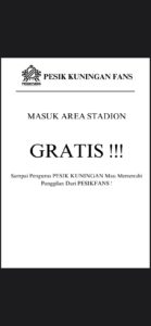 KUNINGAN (MASS) – Pesik Fans kembali berniat menggelar audiensi di Stadion Mashud Kuningan pada Selasa (11/2/2025) sore. Pihaknya meminta kejelasan manajemen Pesik Kuningan terkait denda sebesar Rp20 juta.