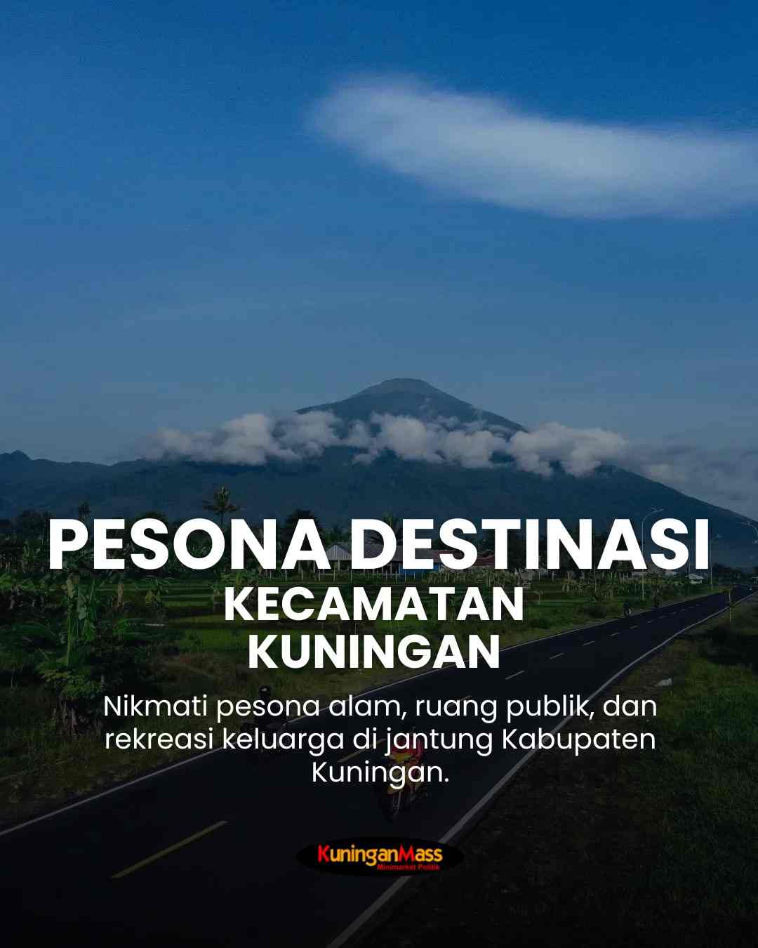 KUNINGAN (MASS) – Kecamatan Kuningan di Kabupaten Kuningan menyimpan beragam potensi wisata yang menarik untuk dikunjungi. Mulai dari wisata alam, ruang publik kota, hingga wahana hiburan keluarga, semuanya tersedia dan dikelola oleh berbagai pihak, seperti pemerintah daerah, Perhutani, hingga swasta. Berikut beberapa destinasi yang dapat menjadi pilihan saat berkunjung ke wilayah ini.