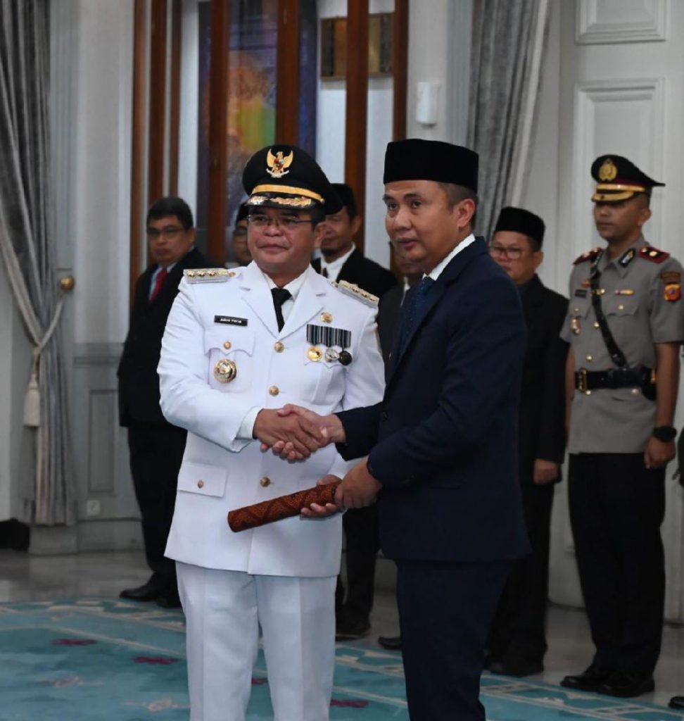 KUNINGAN (MASS) – Penjabat Gubernur Jawa Barat, Bey Machmudin, mengambil sumpah dan melantik Dr. Agus Toyib, S.Sos, M.Si sebagai Penjabat Bupati Kuningan. Acara tersebut berlangsung di Gedung Negara Pakuan, Bandung, pada Jumat (01/11/2024). Pada kesempatan yang sama, juga dilaksanakan pelantikan Budi Waluya, SE, MM sebagai Penjabat Bupati Ciamis.