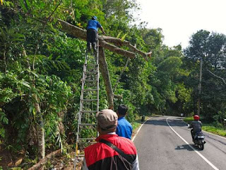 “Ditakutkan suatu waktu pohon tersebut menimpa pengguna jalan dan mengakibatkan kemacetan. Bapak Nuryawan langsung melaporkannya kejadian itu ke call center Damkar Kuningan,” ujar Kepala Damkar, Andri Arga Kusumah.
