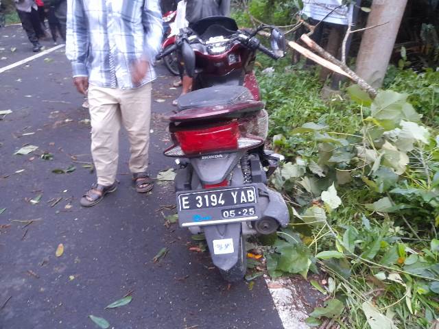 KUNINGAN (MASS) – Dua orang terluka pasca kendaraan motor yang ditumpanginya tertimpa pohon kigambir di Kelurahan/Kecamatan Cigugur yang tumbang pada hari Kamis (7/3/2024) sore ini.