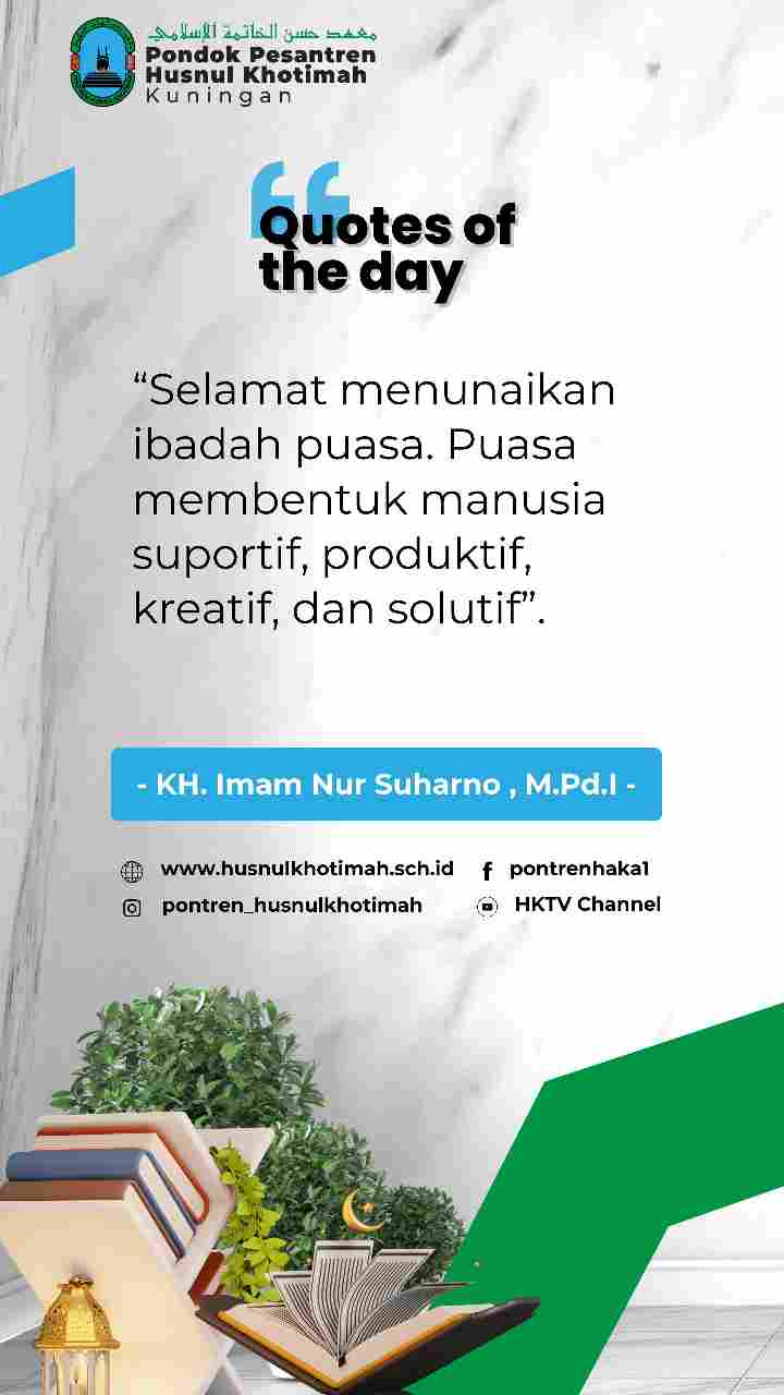 KUNINGAN (MASS) – Selamat menunaikan ibadah puasa! Puasa Ramadhan adalah salah satu ibadah yang paling agung dalam Islam, yang tidak hanya membersihkan jiwa dan raga, tetapi juga membentuk manusia menjadi suportif, produktif, kreatif, dan solutif.
