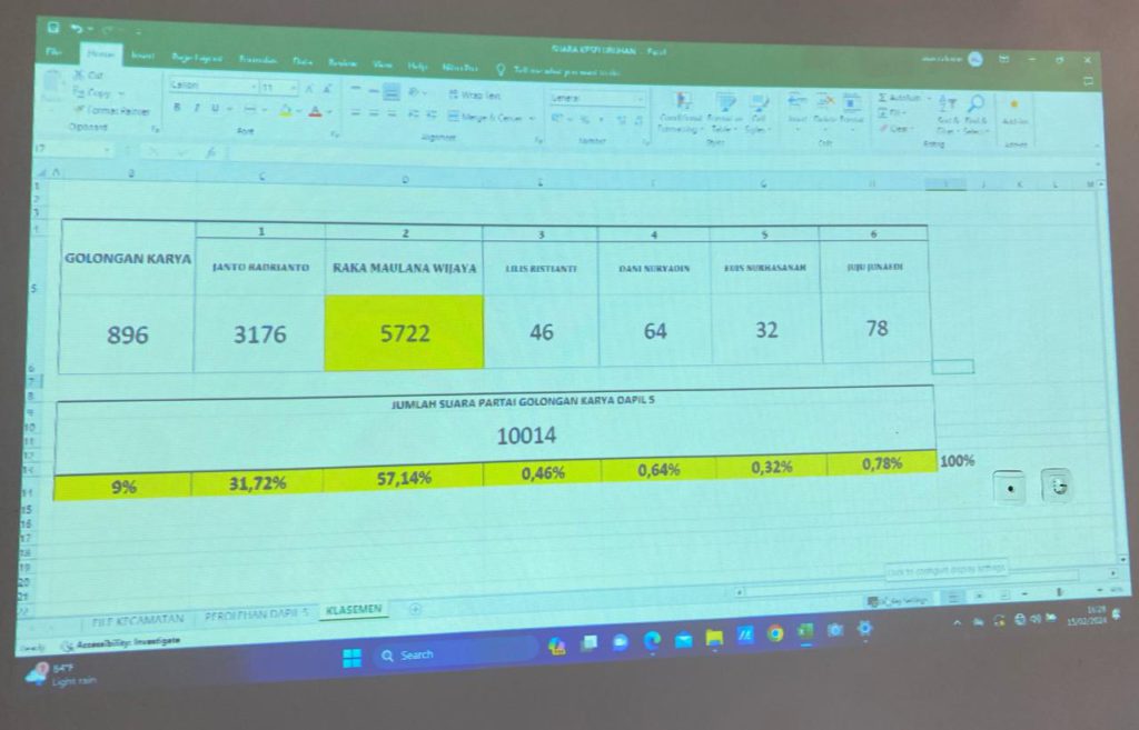 Meski data yang masuk belum 100% yaitu 95% namun selisih antara keduanya cukup jauh sekitar 2.500 suara. Sedangkan jatah 1 kursi bagi Golkar di dapil 5 sudah terpenuhi.