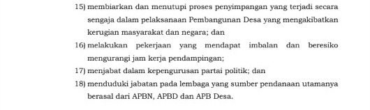 Dalam peraturan tersebut, kata Yogi, dijelaskan bahwa para pendamping itu dilarang double job yang anggaranya dari APBN. Intinya, supaya kondusif mengingat ada beberapa pendamping desa tingkat kecamatan masuk semua ini harus diluruskan. Yogi mendesak, pihak terkait DPMDes harus segera mengambil sikap mengacu kepada aturan Kepmen TPP no 40 tahun 2021.