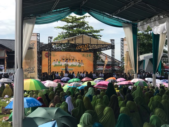 Meski sebagian peserta harus panas-panasan dan menggunakan payung, ribuan massa itu, hadir untuk mengikuti peringatan Harlah Satu Abad NU, sekaligus pelantikan PCNU Kabupaten Kuningan periode 2022-2027.