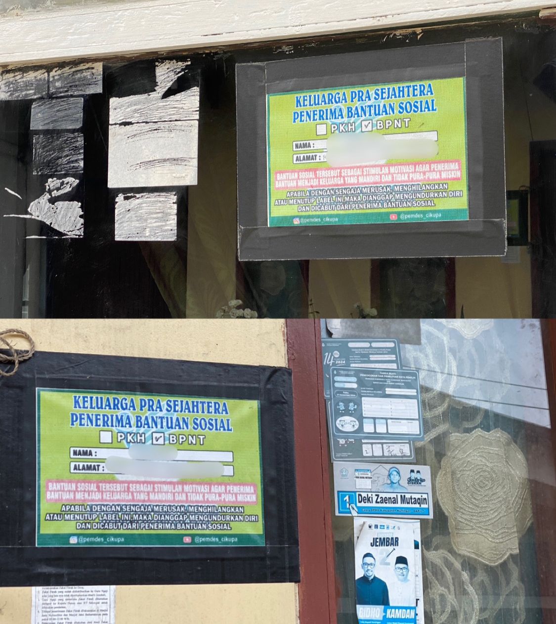 Rumah Penerima Bansos di Desa Cikupa Ditempeli Stiker