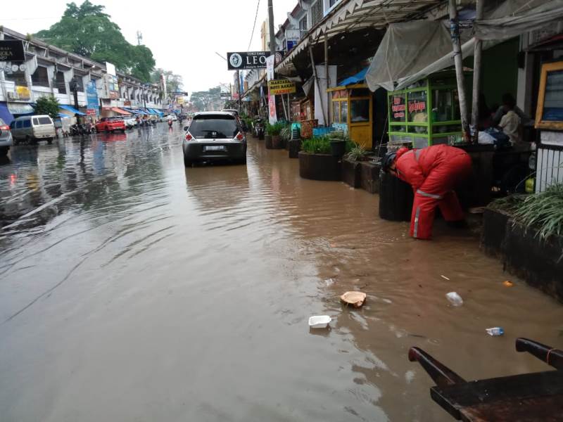 Luapan air sendiri, selain karena derasnya curah hujan, diperkirakan karena gorong-gorong/lubang pembuangan air tersumbat akibat sampah.