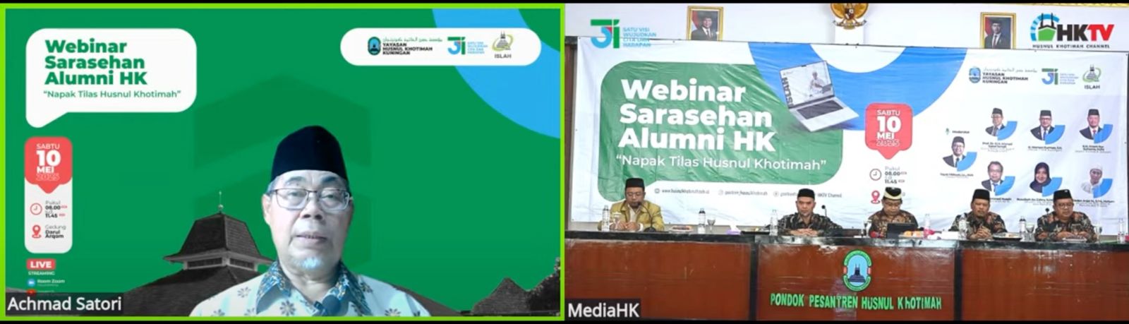 KUNINGAN (MASS) – Gedung Darul Arqam, Sabtu pagi (10/5/2025), tak hanya menjadi tempat berkumpulnya para santri dan alumni. Ia menjadi ruang pengikat antara masa lalu dan masa depan. Dalam rangka Milad ke-31 Yayasan Husnul Khotimah, ratusan pasang mata—baik yang hadir langsung maupun melalui Zoom dan siaran langsung YouTube HKTV—menyimak dengan khidmat: Sarasehan Alumni HK – Napak Tilas Husnul Khotimah.