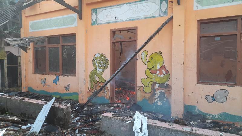 Tidak ada korban jiwa dalam kejadian tersebut. Hanya saja, ada lemari berisi buku, dan Alquran yang juga ikut terbakar. Selain itu, ada juga kursi dan bangunan yang terbakar.