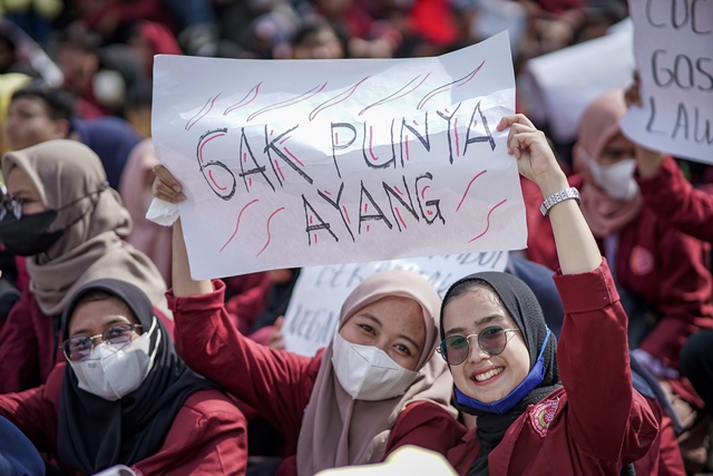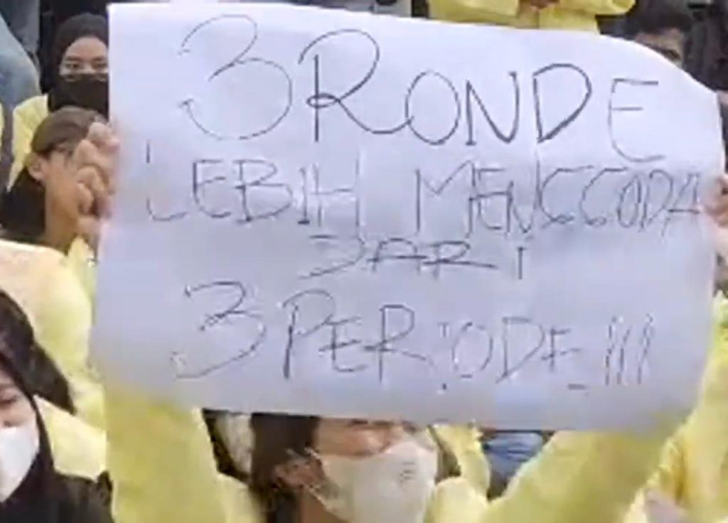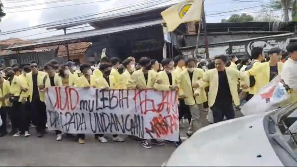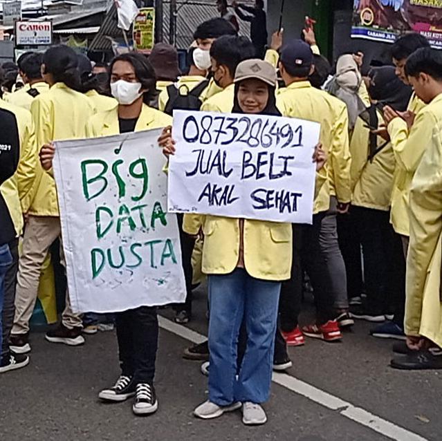 KUNINGAN (MASS) – Dalam aksi demo mahasiswa di Gedung DPRD Kuningan, Senin (11/4/2022) siang, banyak hal-hal unik terjadi. Mulai dari adanya Aliansi Pungut Sampah (APS), sampai tulisan-tulisan nyeleneh yang dbawa peserta aksi.