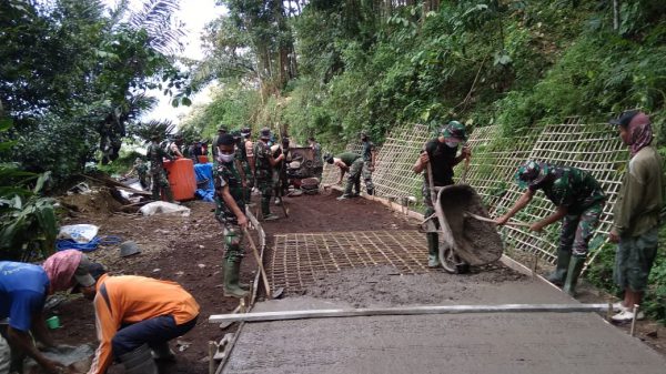 “Keberadaan kami disini lebih kurang satu bulan untuk membangun jalan desa mudah-mudahan apa yang kami perbuat dapat bermanfaat bagi masyarakat,” sebutnya.