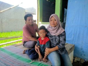Eha Julaeha bersama suami dan sang anak, salah satu siswa yang sudah diterima sekolah namun kemudian terdampak aturan kouta. (Foto: didin sanudin)