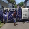 KUNINGAN (MASS)- Hari kedua puasa atau Sabtu (25/4/2020) Jalan Siliwangi atau dekat dengan Lembaga Pemasyarakatan Kuningan tib-tiba terjadi kemacetan. Penyebab, adalah mobil minibus warna putih bernopol E 1127 ZA terbalik.