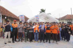 Foto bersama warga, Baznas, Moka, BPBD dan Babinsa, dan Polsek Cibingbin