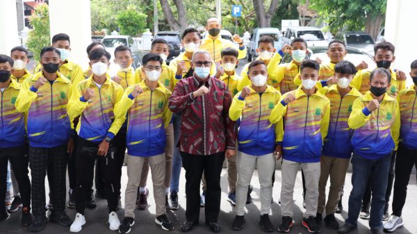 KUNINGAN (MASS)- Bupati Kuningan H Acep Purnama SH MH Melepas Kontingen Pesik U-17, pelatih dan official di halaman Pendopo Kuningan, Rabu (10/11/2021). Kontingen Pesik...